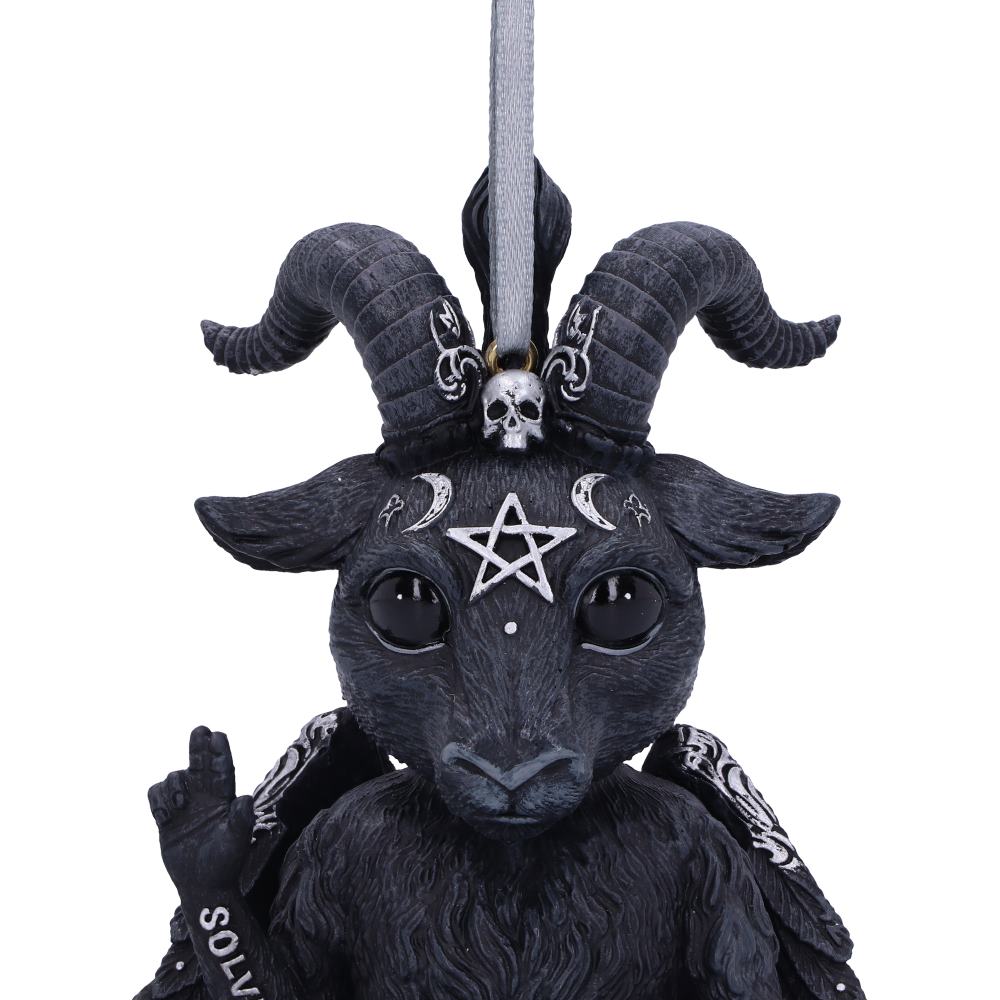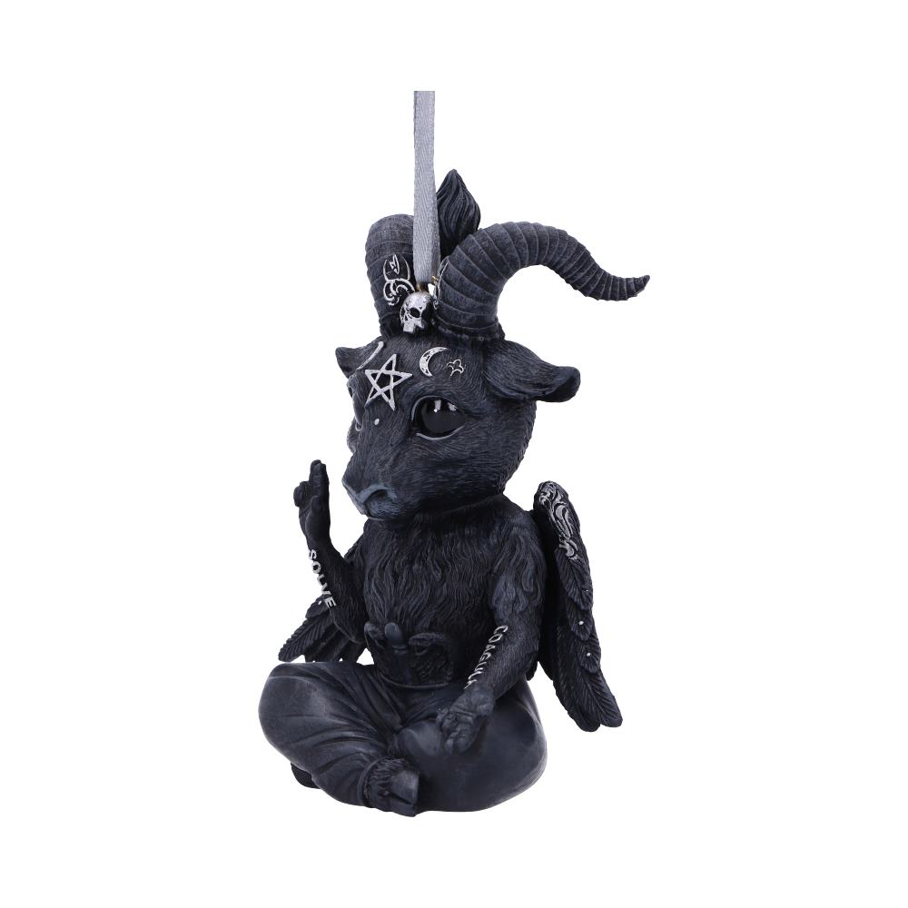 Bring a touch of bold and mysterious flair to your Christmas decorations with the Baphoboo Hanging Ornament from Nemesis Now! This striking pendant features Baphoboo, a cute yet dark take on the classic Baphomet symbol, that is sure to turn heads. Made from resin and hand-painted, this 11cm ornament is perfect for anyone looking to add a touch of mysticism to their decorations. With his detailed horns, sharp gaze and wings, Baphoboo will add a unique and unusual flair to your tree. Ideal as a gift for goth fans or anyone looking to add a touch of magic and dark mystery to the festive season!